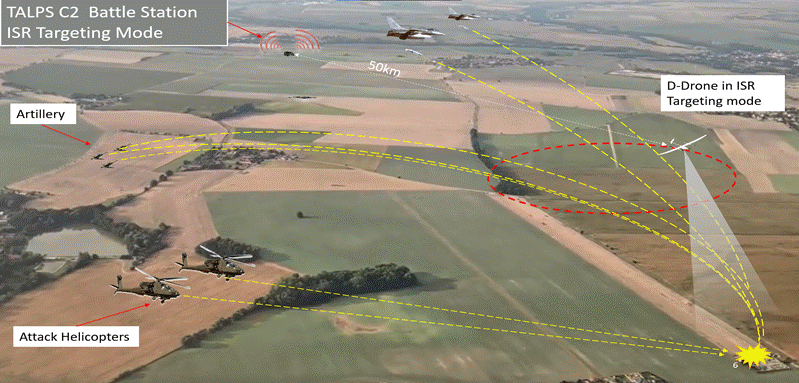 • Το TALPS λειτουργεί με μια ελάχιστη αλλά πλήρως αυτόνομη σύνθεση – σταθμό C2 με το TALPS Platform, οργανικό fixed-wing ISR/Designator UAV και δύο ή/και περισσότερα UCAV SARISA II – ενώ μπορεί να ενσωματώσει και εξωτερικά effectors (αεροσκάφη, ελικόπτερα, οχήματα εδάφους που φέρουν laser-guided πυρομαχικά), επιτυγχάνοντας πλήρη ενοποίηση του πεδίου επιχειρήσεων. Η ανοικτή αρχιτεκτονική, η προσαρμοστικότητα και ο υψηλός βαθμός αυτοματοποίησης το κατατάσσουν στα πλέον προηγμένα ελληνικά αυτόνομα συστήματα νέας γενιάς.
